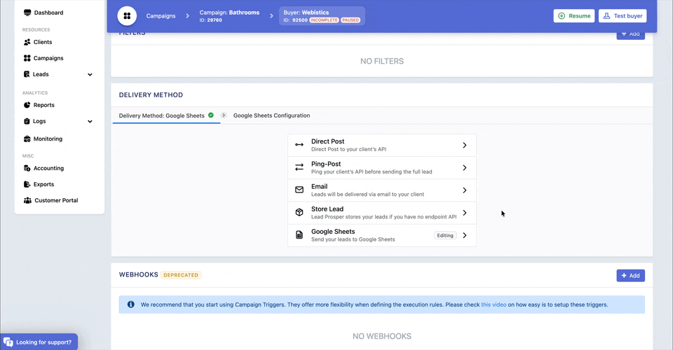 Adding A Google Sheets Buyer To Your Lead Prosper Campaign